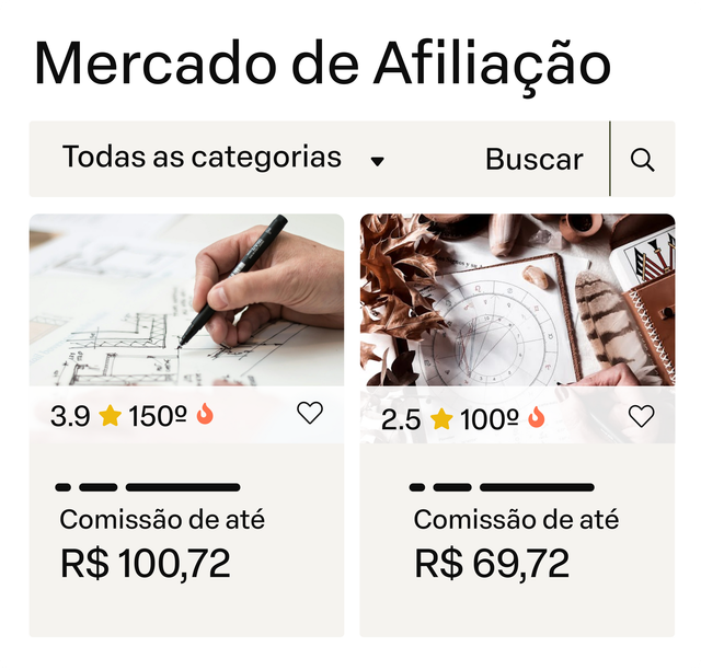 Navegue pelo Marketplace e encontre produtos com alto potencial de conversão para a sua audiência. Seu link de Afiliado é a chave para suas comissões.