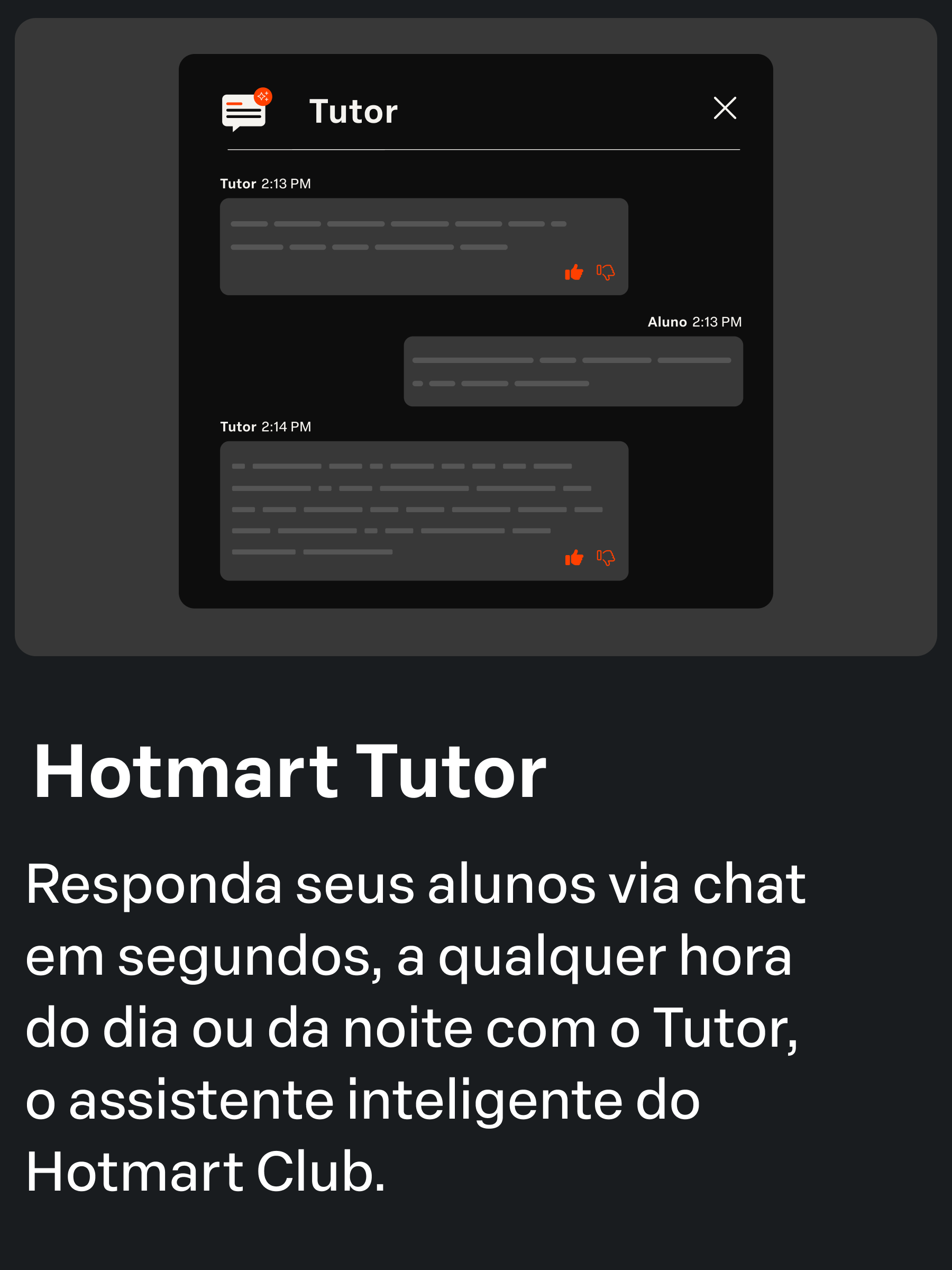 Conheça o Tutor, assistente inteligente Hotmart Club, responde dúvidas em segundos via chat.