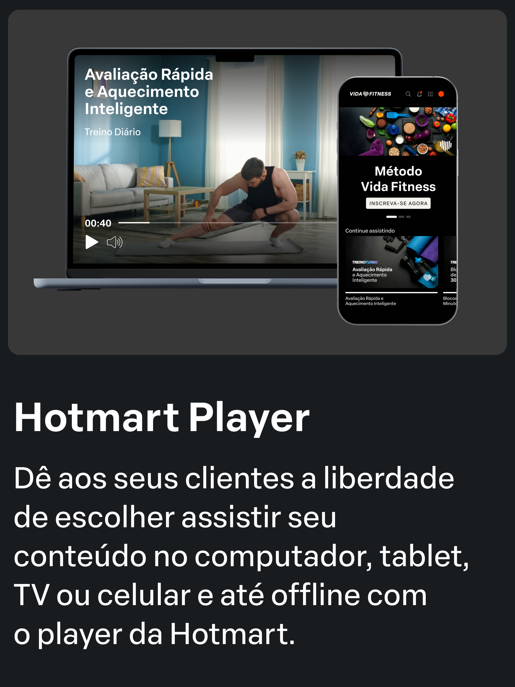 Com o Hotmart Player, o reprodutor de vídeos da Hotmart, poderá aproveitar todas as funcionalidades do Club, como o Tutor, legendas automáticas, acesso offline aos seus conteúdos e seus clientes poderão assistir em qualquer dispositivo.